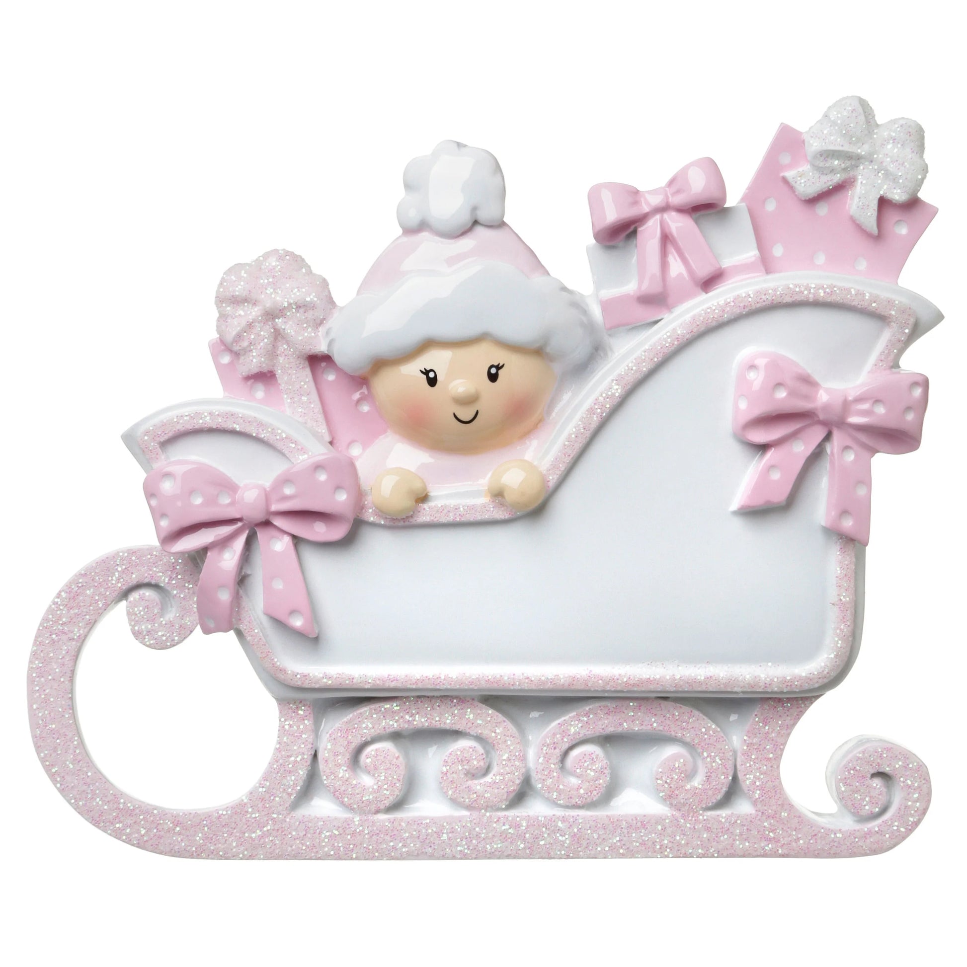 Baby In A Sleigh (Pink) Personalized Christmas Ornament